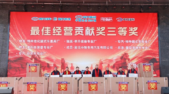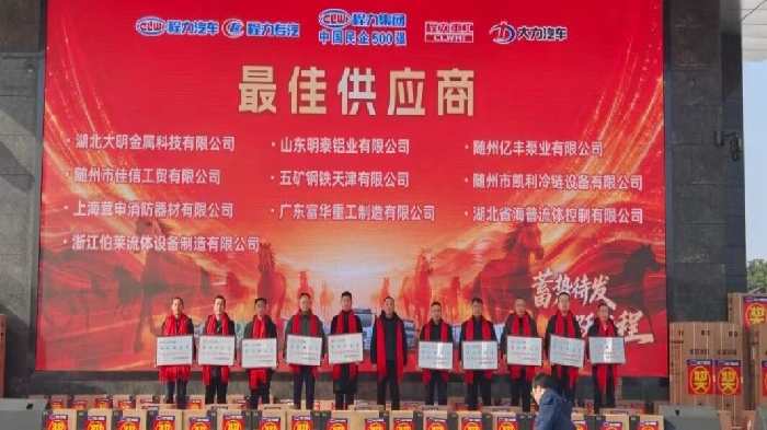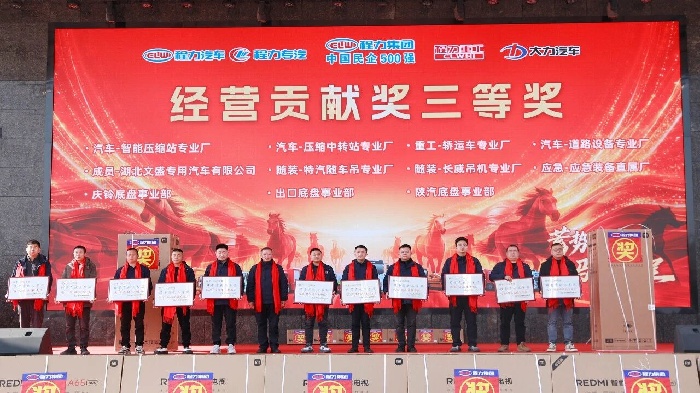 “駿馬馳騁勇爭先,蓄勢待發啟新程”,2026年新春將至,程力汽車集團股份有限公司,于2月13日上午,在隨州總部程力大舞臺文化廣場,以蓄勢待發馬躍新程為主題,隆重召開年會暨表彰大會,集團公司2000余名獲獎生產經營單位負責人、先進工作者、示范標兵、金牌跟單員、十大銷售體系團隊獲獎嘉賓、先鋒黨員、優秀黨支部,以及員工代表歡聚一堂,回望耕耘、致敬榜樣、擘畫未來,共赴嶄新征程。