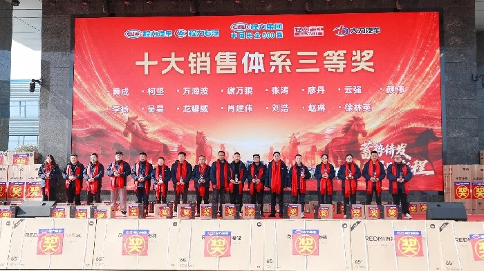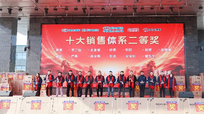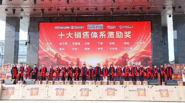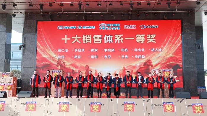 銷售與經營體系表彰重磅登場。從金牌跟單員到十大銷售體系各獎項,從經營激勵獎、進步獎到貢獻獎,階梯式榮譽與豐厚獎品——米家冰箱、空氣炸鍋、REDMI電視、筆記本電腦乃至出國游,充分彰顯集團以績論獎、重獎功臣的鮮明導向,激勵全員勇攀業績高峰。